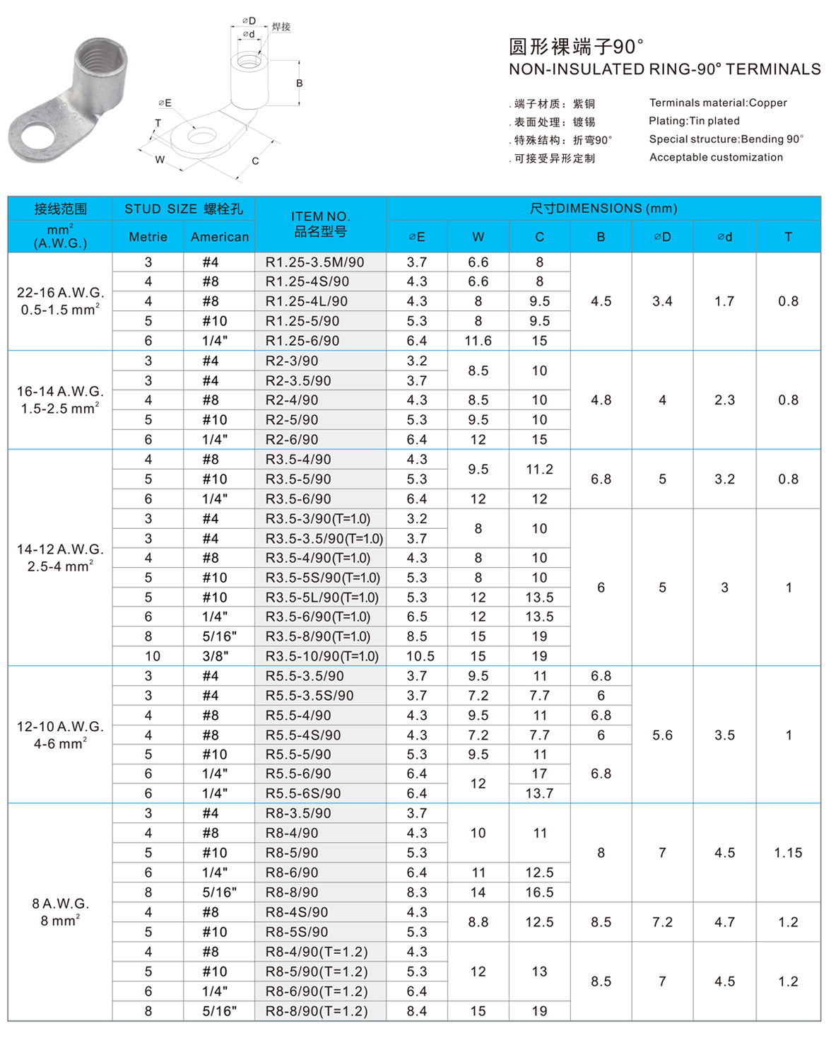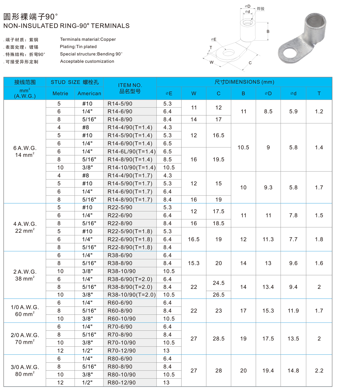 圆形裸端子(90D)