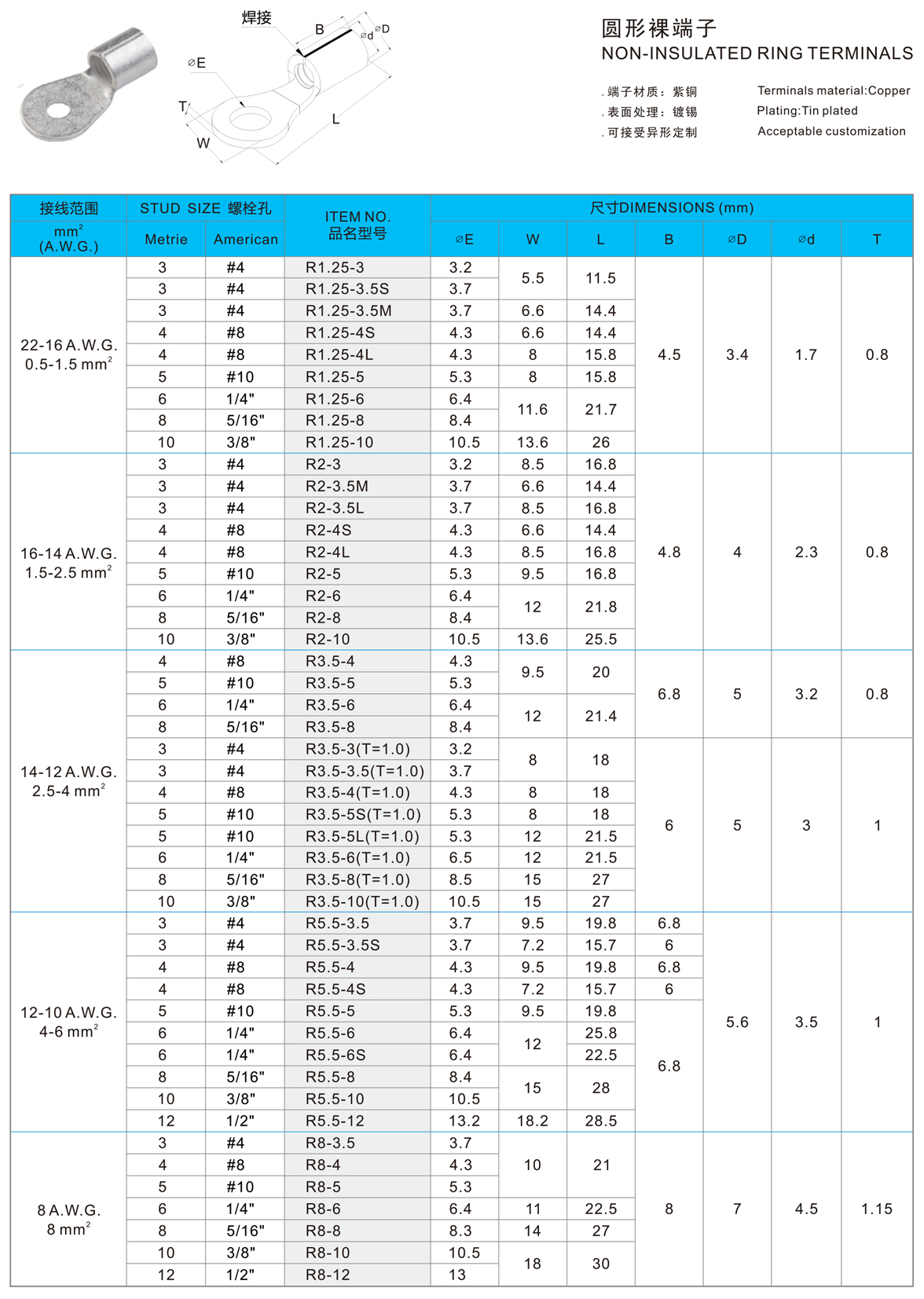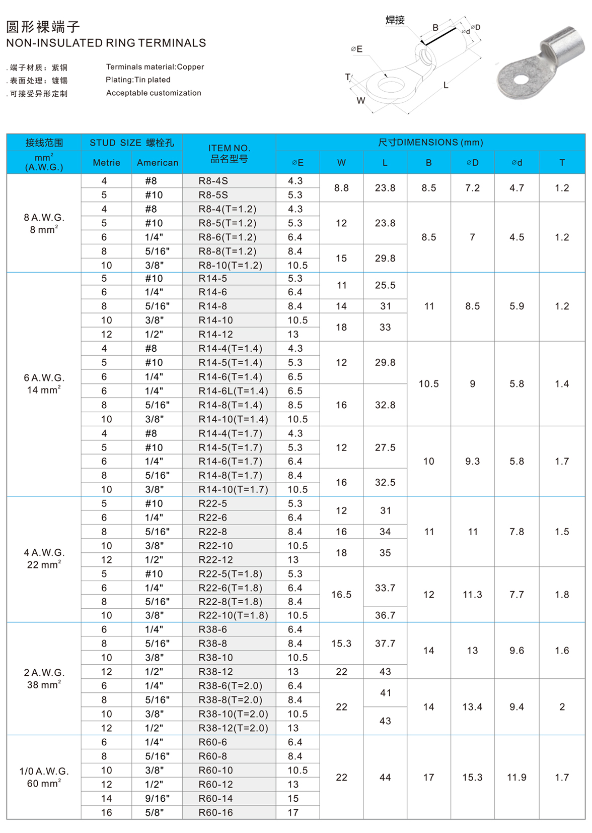 圆形裸端子