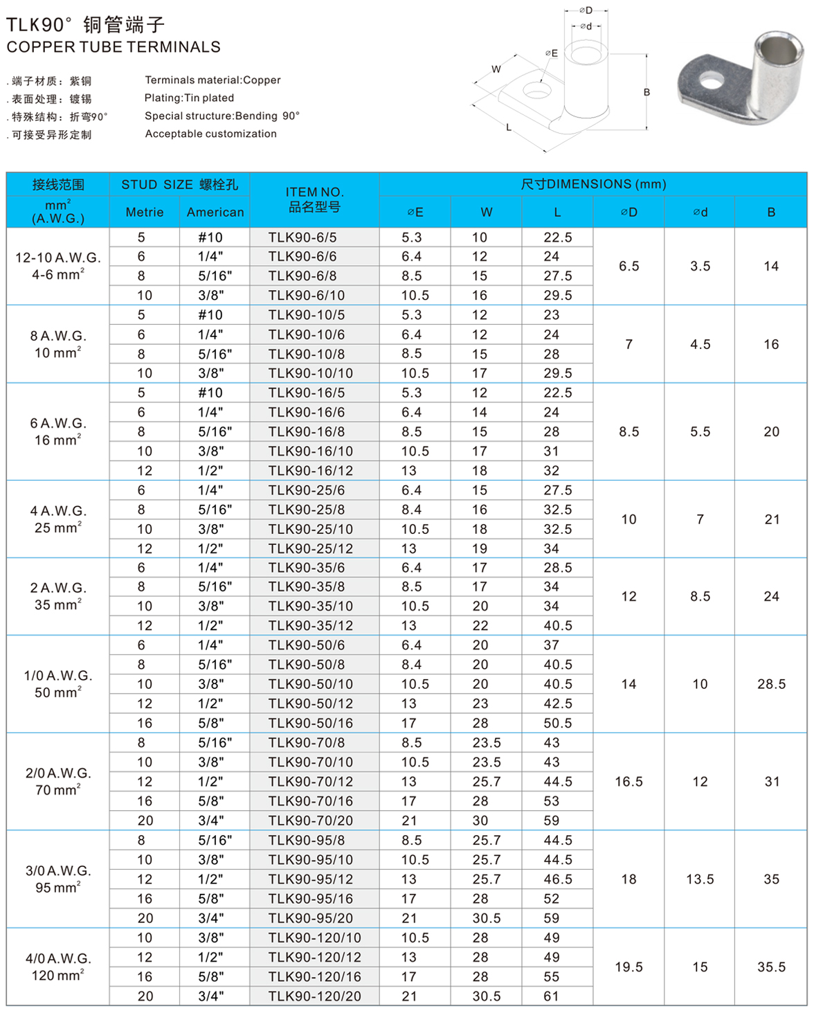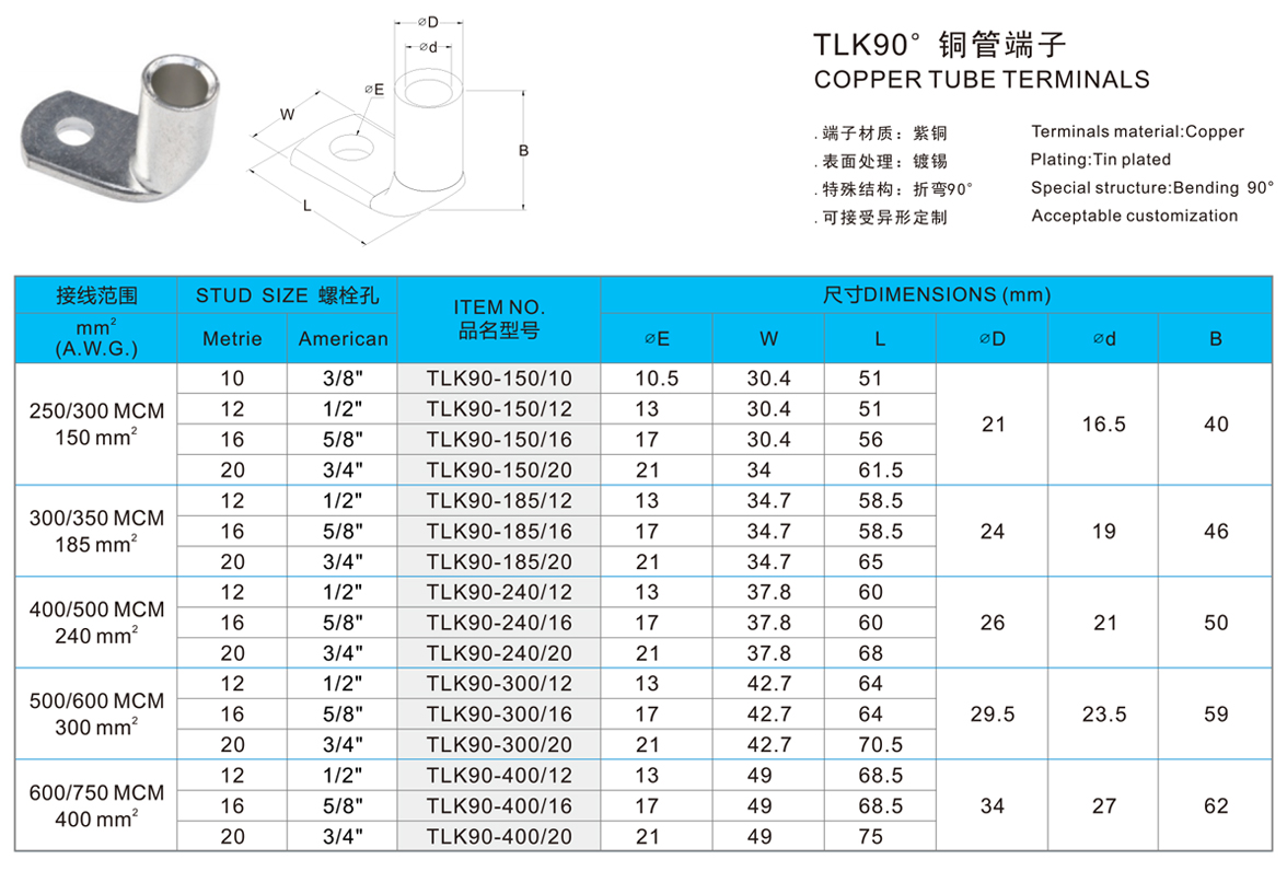 TLK90° 铜管端子