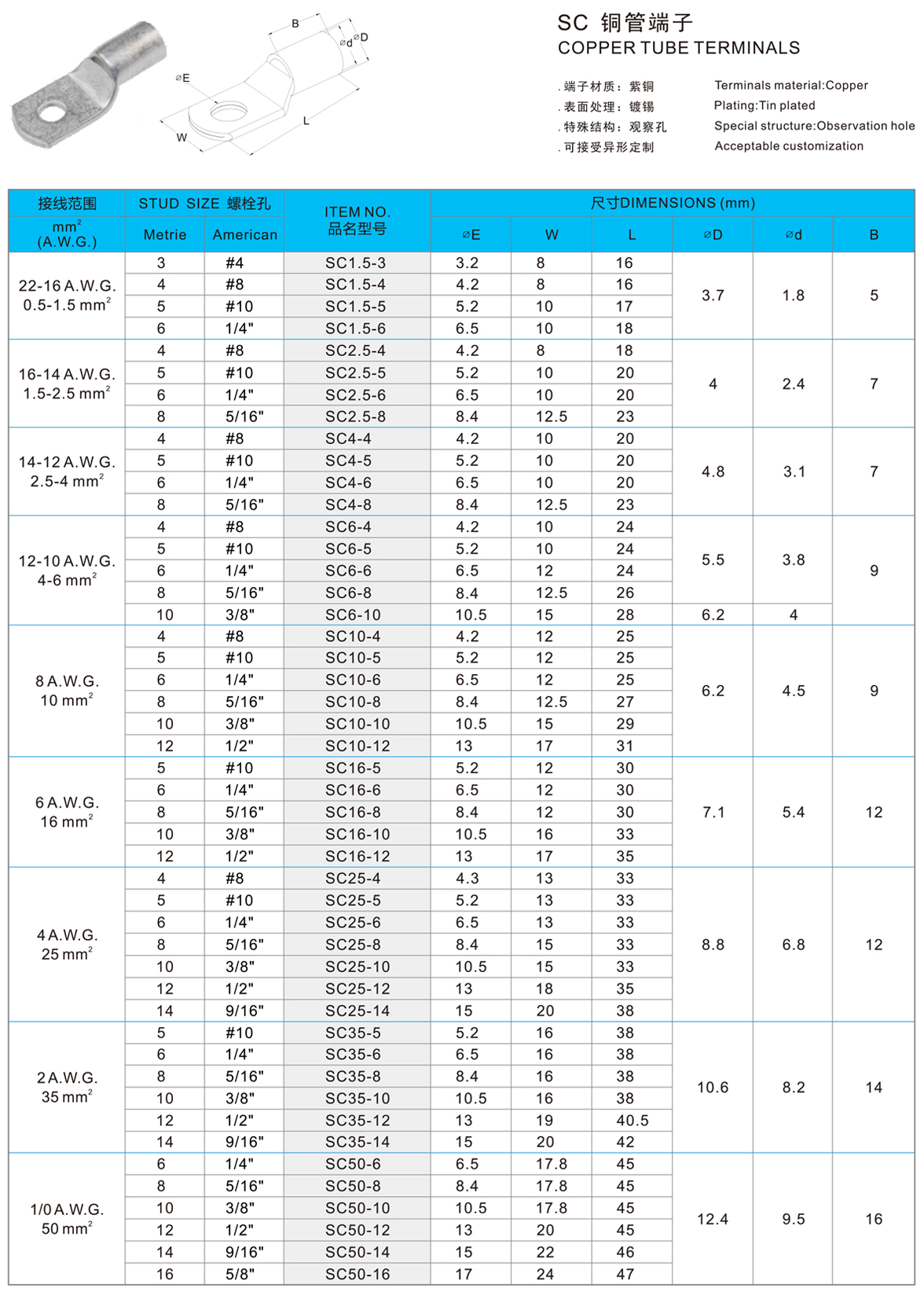 SC铜管端子